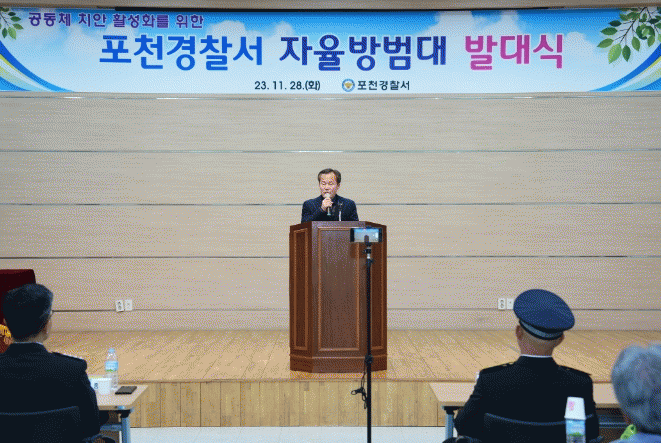 [HKSÇàÁ¤¹æ¼Û]Æ÷õ½ÃÀÇȸ ¼°ú¼® ÀÇÀåÀÌ Áö³ 28ÀÏ Æ÷õ°æÂû¼ ¾î¿ï¸¶´ç¿¡¼ ÁøÇàµÇ´Â ¡®Æ÷õ°æÂû¼ ÀÚÀ²¹æ¹ü´ë ¹ß´ë½Ä¡¯¿¡ Âü¼®Çß´Ù. ÀÚÀ²¹æ¹ü´ë Ȱµ¿À» Áö¼ÓÀûÀ¸·Î Áö¿øÇÏ°í ´ë¿øÀÇ ÀÚ±à½É°ú ¼Ò¼Ó°¨ °íÃ븦 ÅëÇØ Áö¿ª¾ÈÀü¿¡ ´ëÇÑ ±â¿©¡¦