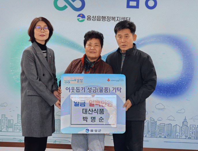 [HKSÇàÁ¤¹æ¼Û]À½¼º±º À½¼ºÀ¾ ´ë»ê½ÄǰÀÇ ¹Ú¸í¼ø ´ëÇ¥°¡ À½¼ºÀ¾ Áö¿ª»çȸº¸ÀåÇùÀÇü¿¡ ¼º±Ý 100¸¸¿ø°ú 50¸¸¿ø »ó´çÀÇ È£¹ÚÁóÀ» ±âŹÇß´Ù. Áö¿ª¿¡¼ °Ç°¿øÀ» ¿î¿µÇÏ´Â ¹Ú ´ëÇ¥´Â ¿¬¸»À» ¸Â¾Æ Áö¿ªÀÇ ¾î·Á¿î ÀÌ¿ôÀ» À§ÇØ ½á ´Þ¶ó¸ç Áö³ 2¡¦