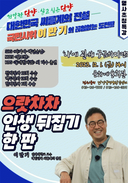 [HKSÇàÁ¤¹æ¼Û]´Ü¾ç±ºÀº ¿À´Â 12¿ù 1ÀÏ ¹®È¿¹¼úȸ°ü¿¡¼ °øÁ÷ÀÚ¿Í ÁֹΠ300¿© ¸íÀ» ´ë»óÀ¸·Î ¸í»ç ÃÊû Ư°À» °³ÃÖÇÑ´Ù. À̳¯ ¸í»ç´Â ´ëÇѹα¹ ¾¾¸¥°èÀÇ Àü¼³, À̸¸±â ÀÎÁ¦´ëÇб³ ±³¼ö´Ù. °ÀÇ´Â ¡®À¸¶ùÂ÷Â÷ Àλý µÚÁý±â ÇÑ ÆÇ¡¯À» ÁÖ¡¦