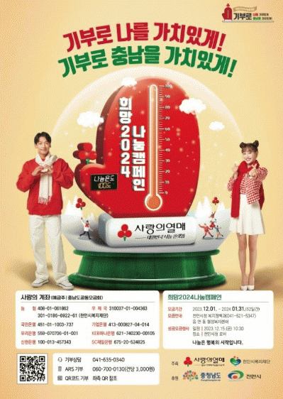 [HKSÇàÁ¤¹æ¼Û]õ¾È½Ã¿Í Ãæ³²»çȸº¹Áö°øµ¿¸ð±Ýȸ°¡ 12¿ù 1ÀϺÎÅÍ ³»³â 1¿ù 31ÀϱîÁö 62Àϰ£ ÀÌ¿ôµ½±â ¸ð±Ý¿îµ¿ ¡®Èñ¸Á 2024 ³ª´®Ä·ÆäÀΡ¯À» ÁøÇàÇÑ´Ù°í 28ÀÏ ¹àÇû´Ù. À̹ø Ä·ÆäÀÎÀº ¡®±âºÎ·Î ³ª¸¦ °¡Ä¡ÀÖ°Ô, ±âºÎ·Î õ¾ÈÀ» °¡Ä¡ÀÖ°Ô¡¯¡¦