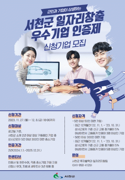 [HKSÇàÁ¤¹æ¼Û]¼Ãµ±ºÀÌ 12¿ù 8ÀϱîÁö °í¿ë âÃâ¿¡ ±â¿©ÇÑ °ü³» ±â¾÷À» ´ë»óÀ¸·Î ¡®2023³â ¼Ãµ±º ÀÏÀÚ¸®Ã¢Ãâ ¿ì¼ö±â¾÷ ÀÎÁõÁ¦¡¯ ½Åû ±â¾÷À» ¸ðÁýÇÑ´Ù. ¡®2023³â ¼Ãµ±º ÀÏÀÚ¸®Ã¢Ãâ ¿ì¼ö±â¾÷ ÀÎÁõÁ¦¡¯´Â °í¿ë âÃâ È®´ë¿¡ ±â¿©ÇÑ ±â¾÷À»¡¦