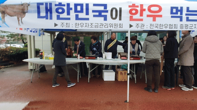 [HKSÇàÁ¤¹æ¼Û]Àü±¹ÇÑ¿ìÇùȸ ÁõÆò±ºÁöºÎ´Â 27ÀÏ ÁõÆò±ºÃ» ¾Õ¿¡¼ ÇÑ¿ì ½Ã½Äȸ Çà»ç¸¦ °¡Á³´Ù. Àü±¹ÇÑ¿ìÇùȸ ÁõÆòÁöºÎ°¡ ÁÖÃÖÇÑ À̳¯ Çà»ç´Â ¼Ò°í±â 40kg(½Ã°¡ 450¸¸¿ø »ó´ç)¸¦ ÁغñÇØ ÀÌ·ïÁ³´Ù. À̳¯ ÁõÆò±ºÃ» ¾Õ¿¡´Â ½Ã½Äȸ¿¡ Âü¿©Çϴ¡¦