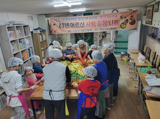 [HKSÇàÁ¤¹æ¼Û] »êû ÂüÆ÷µµÁö¿ª¾Æµ¿¼¾ÅͰ¡ Á÷Á¢ ´ã±Ù ±èÄ¡¸¦ ³ª´©¸ç ÀÌ¿ô »ç¶ûÀ» ½ÇõÇÏ´Â ÇÁ·Î±×·¥À» ¿î¿µÇØ ´«±æÀ» ²ö´Ù. 27ÀÏ »êû±º¿¡ µû¸£¸é ÂüÆ÷µµÁö¿ª¾Æµ¿¼¾ÅÍ´Â ¾ÆÀ̵éÀÌ Á÷Á¢ ´ã±Ù ±èÄ¡¸¦ »ýºñ·®¸é ¾î¸£½Å 10°¡±¸¿¡ Àü´ÞÇß´Ù.¡¦