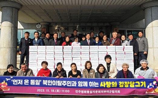 [HKSÇàÁ¤¹æ¼Û]¹ÎÁÖÆòÈÅëÀÏÀÚ¹®È¸ÀÇ ºÎ¿©±ºÇùÀÇȸ´Â Áö³ 18ÀÏ ºÎ¿© ±º¹Îȸ°ü ¾Õ ±¤Àå¿¡¼ ºÎ¿©±ºÇùÀÇȸ ÁÖ°üÀ¸·Î ºÏÇÑÀÌÅ»Áֹΰú ÇÔ²² ÇÏ´Â ±èÀå ´ã±×±â Çà»ç¸¦ °¡Á³´Ù. Çà»ç¿¡´Â ¹ÚÁ¤Çö ºÎ¿©±º¼ö, Á¤ÁøÀû ±¹È¸ÀÇ¿øÀ» ºñ·Ô ¹ÎÁÖÆòÅë ÀÚ¡¦