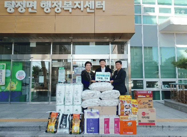 [HKSÇàÁ¤¹æ¼Û]¾Æ»ê½Ã ÅÁÁ¤¸é ¼ÒÀç ¾Æ»ê¹Ù¿ï±³È¸°¡ Áö³ 21ÀÏ ÅÁÁ¤¸é ÇູŰ¿òÃßÁø´Ü¿¡ ¾î·Á¿î ÀÌ¿ôÀ» µ½±âÀ§ÇÑ ÈÄ¿ø¹°Ç°(ÀÌºÒ ¹× ½Ä·áǰ)À» ±âºÎÇß´Ù. Àü´Þ ¹ÞÀº ÈÄ¿ø¹°Ç°Àº ±³È¸ ¼ºµµµéÀÌ À̺Ò, ½Ò, ¶ó¸é, ÈÀåÁö µîÀ» ±âºÎÇØ ¸¶·ÃÇßÀ¸¡¦