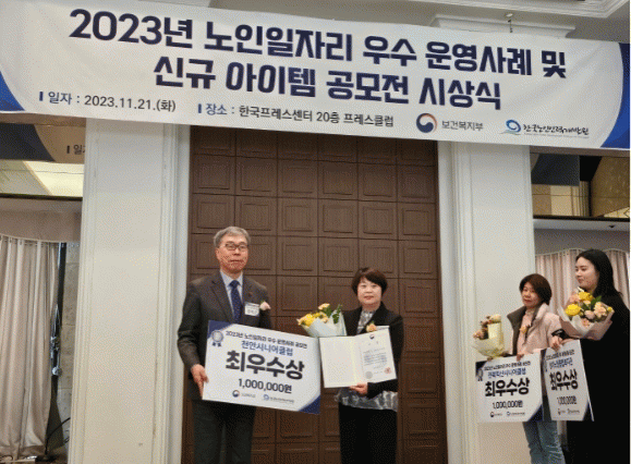 [HKSÇàÁ¤¹æ¼Û] õ¾È½Ã´Â 21ÀÏ Ãµ¾È½Ã½Ã´Ï¾îŬ·´ÀÇ ¡®°í±â¹ä»ó¡¯ÀÌ ¡®2023³â ³ëÀÎÀÏÀÚ¸® ¿ì¼ö ¿î¿µ»ç·Ê °ø¸ðÀü¡¯¿¡¼ ÃÖ¿ì¼ö»óÀÎ º¸°Çº¹ÁöºÎ Àå°ü»óÀ» ¼ö»óÇß´Ù°í ¹àÇû´Ù. °í±â¹ä»óÀº 2021³â 8¿ù Çѱ¹ÁߺιßÀü ³ëÀÎÀÏÀÚ¸® âÃâ»ç¾÷ °ø¡¦