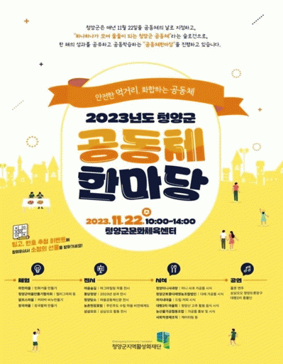[HKSÇàÁ¤¹æ¼Û]û¾ç±ºÀº ¿À´Â 22ÀÏ ¿ÀÀü 10½Ã, û¾ç¹®ÈüÀ°¼¾ÅÍ¿¡¼ ±×µ¿¾ÈÀÇ ¼º°ú¸¦ °øÀ¯Çϰí Áö¼Ó °¡´ÉÇÑ °øµ¿Ã¼ Ȱµ¿À» µµ¸ðÇϰíÀÚ ¡®2023³âµµ û¾ç±º °øµ¿Ã¼ÇѸ¶´ç¡¯À» °³ÃÖÇÑ´Ù. À̹ø Çà»ç´Â ¡®¾ÈÀüÇÑ ¸Ô°Å¸®, ÈÇÕÇÏ´Â °øµ¿Ã¼¡¯¶õ¡¦