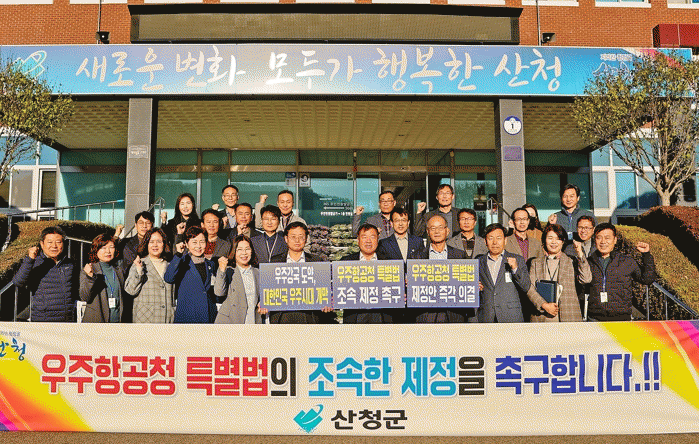 [HKSÇàÁ¤¹æ¼Û]»êû±ºÀº 20ÀÏ ¡®¿ìÁÖÇ×°øÃ»ÀÇ ¼³Ä¡ ¹× ¿î¿µ¿¡ °üÇÑ Æ¯º°¹ý¡¯Åë°ú¸¦ Ã˱¸ÇÏ´Â °æ³²½ÃÀ屺¼öÇùÀÇȸ ¸±·¹ÀÌ Ä·ÆäÀο¡ µ¿ÂüÇß´Ù°í ¹àÇû´Ù. À̳¯ Ä·ÆäÀο¡´Â À̽ÂÈ »êû±º¼ö¸¦ ºñ·ÔÇØ °£ºÎ°ø¹«¿ø µîÀÌ Âü¿©ÇØ Æ¯º°¹ý Åë°ú¸¦ ÃË¡¦