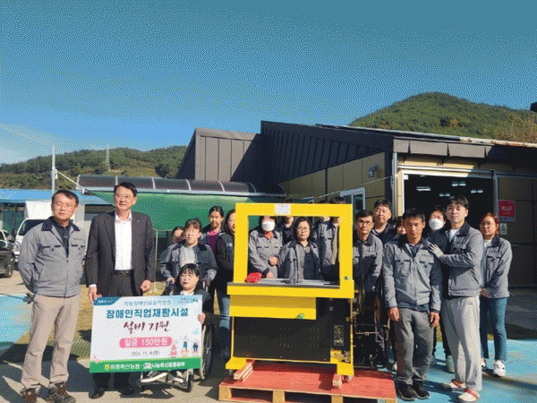 [HKSÇàÁ¤¹æ¼Û]Çϵ¿Ãà»ê³óÇù ³ª´®Ãà»ê¿îµ¿º»ºÎ´Â ÁßÁõÀå¾ÖÀÎÀÇ ÀÛ¾÷ȯ°æ°³¼±À» À§ÇØ °íÀü¸é¿¡ ÀÖ´Â ¼Û¸²º¹ÁöÀç´Ü Çϵ¿Àå¾ÖÀκ¸È£ÀÛ¾÷Àå¿¡ ÀÚµ¿Æ÷Àå±â±â ±¸ÀÔºñ 150¸¸¿øÀ» ÈÄ¿øÇß´Ù°í 16ÀÏ ¹àÇû´Ù.