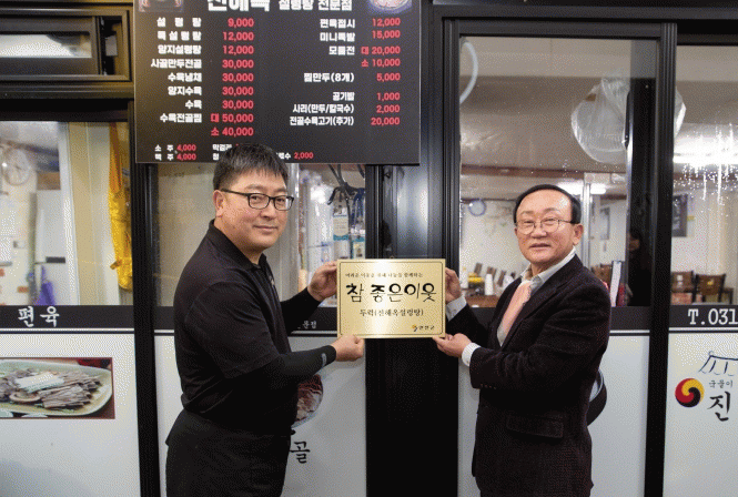 [HKSÇàÁ¤¹æ¼Û]¿¬Ãµ±ºÀº Áö¿ª»çȸ ¾î·Á¿î ÀÌ¿ôÀ» À§ÇØ ³ª´®À» ÇÔ²²Çϰí ÀÖ´Â ÈÄ¿ø¾÷üÀÎ Àü°îÀüÅë½ÃÀå ºÀ»ç´Üü µÎ·° ÁøÇØ¿Á¼³··ÅÁ, ¹Ù¿ì³×±¹¼ö¿¡ ¡®Âü ÁÁÀº ÀÌ¿ô ³ª´®ÇöÆÇ¡¯À» Àü´ÞÇß´Ù°í 15ÀÏ ¹àÇû´Ù.