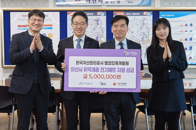 [ÃæÃ»±Ç] Çѱ¹ÀÚ»ê°ü¸®°ø»ç Ä·ÄÚÀÎÀç°³¹ß¿ø, ¾Æ»ê½Ã Ãë¾à°èÃþ Àü±â¸ÅÆ® Áö¿ø ¼º±Ý 500¸¸ ¿ø Àü´Þ |2023. 11.15