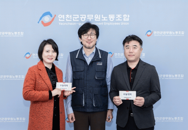 [HKSÇàÁ¤¹æ¼Û]¿¬Ãµ±º°ø¹«¿ø³ëµ¿Á¶ÇÕÀº 14ÀÏ ³ëÁ¶»ç¹«½Ç¿¡¼ 2024Çг⵵ ´ëÇмöÇдɷ½ÃÇèÀ» ¾ÕµÐ Á¶ÇÕ¿ø ÀÚ³à 11¸í¿¡°Ô ¼ö´É´ë¹Ú °Ý·Á ¼±¹°À» Àü´ÞÇß´Ù.