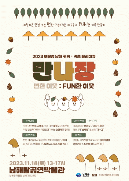 [HKSÇàÁ¤¹æ¼Û]³²ÇرºÀº ¿À´Â 18ÀÏ ³²ÇØÅ»°ø¿¬¹Ú¹°°ü(À̵¿¸é ³²ÇØ´ë·Î 2412)¿¡¼ ¡®2023 º¸¹°¼¶ ³²ÇØ ±Í³ó±ÍÃÌ Çø®¸¶ÄÏ, ¸¸³ªÀå:FUNÇÑÀÌ¿ô¡¯ À» °³ÃÖÇÑ´Ù°í ¹àÇû´Ù.