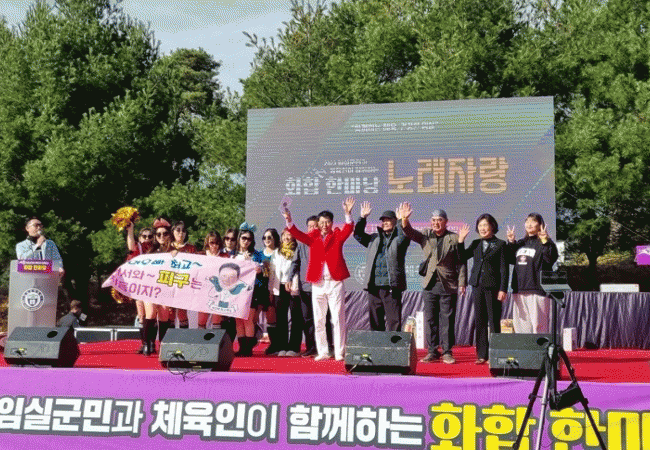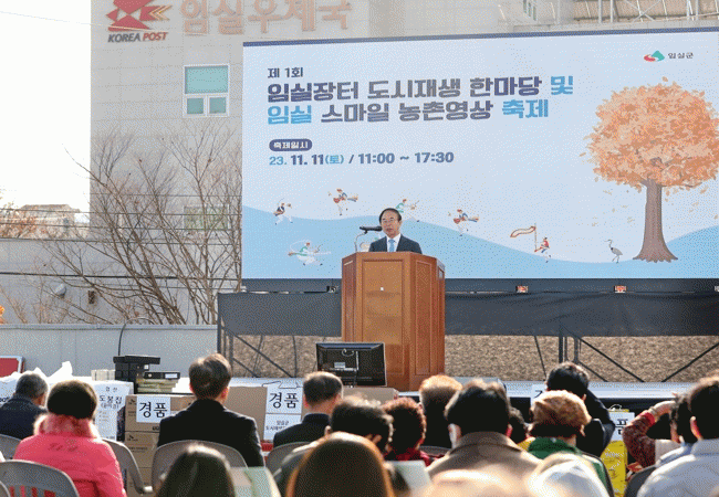 [HKSÇàÁ¤¹æ¼Û]ÀӽDZºÀÌ ÈÄ¿øÇϰí ÀӽǽÃÀå»óÀÎȸ¿Í ÀӽDZº µµ½ÃÀç»ýÁö¿ø¼¾ÅͰ¡ ÁÖ°üÇÑ ÀÓ½ÇÀåÅÍ µµ½ÃÀç»ý ÇѸ¶´ç ÃàÁ¦°¡ Áö³ 11ÀÏ ÀӽǽÃÀå ´Ù±â´ÉÁÖÂ÷Àå Æ¯¼³¹«´ë¿¡¼ Áö¿ª¹ÎÀÇ ¶ß°Å¿î ¼º¿ø ¼Ó¿¡¼ ¸¶¹«¸®µÆ´Ù.