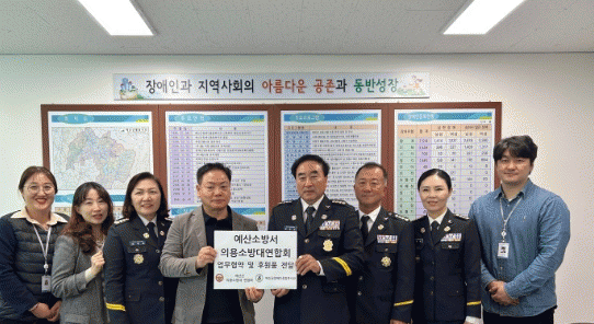 [HKSÇàÁ¤¹æ¼Û] ¿¹»ê±ºÀå¾ÖÀÎÁ¾ÇÕº¹Áö°ü°ú ¿¹»ê¼Ò¹æ¼ÀÇ¿ë¼Ò¹æ´ë¿¬ÇÕȸ´Â ¿¹»ê±º Àå¾ÖÀÎÀÇ Áö¿ª»çȸ ¾ÈÀü¸Á ±¸ÃàÀ» À§ÇØ 11¿ù 10ÀÏ ±Ý¿äÀÏ ¿¹»ê±ºÀå¾ÖÀκ¹Áö°ü¿¡¼ Çù¾à½Ä ¹× ÈÄ¿ø¹°Ç° Àü´Þ½ÄÀ» °¡Á³´Ù.