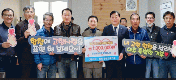 [HKSÇàÁ¤¹æ¼Û] ÇÕõ±º¿¡ ¿¬ÀÏ °íÇâ»ç¶û±âºÎÀÇ ¼Õ±æÀÌ À̾îÁö°í ÀÖ´Â °¡¿îµ¥ 10ÀÏ (Àç)´ë±¸¡¤°æºÏ ÇÕõ¾ð·ÐÀÎȸ ÀüÀÍ»ó ȸÀå ¿Ü È¸¿øµéÀÌ °íÇâ»ç¶û±âºÎ±Ý 100¸¸¿øÀ» ±âºÎÇϸç ÇÕõ »ç¶û¿¡ µ¿ÂüÇß´Ù.