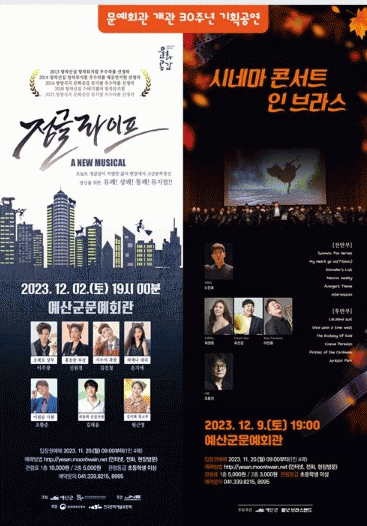 [HKSÇàÁ¤¹æ¼Û]¿¹»ê±º¹®¿¹È¸°üÀº °³°ü 30ÁÖ³âÀ» ±â³äÇÏ´Â ¸¶Áö¸· °ø¿¬À¸·Î Çѱ¹¹®È¿¹¼úȸ°ü¿¬ÇÕȸ °ø¸ð»ç¾÷ ¡®¹æ¹æ°î°î ¹®È°ø°¨»ç¾÷¡¯ ¼±Á¤µÈ ¡®¹ÂÁöÄà Á¤±Û¶óÀÌÇÁ¡¯¿Í ¡®½Ã³×¸¶ ÄܼƮ ÀÎ ºê¶ó½º¡¯ °ø¿¬À» ¿À´Â 12¿ù 2Àϰú 9ÀÏ ¿ÀÈÄ 7½Ã¡¦ |