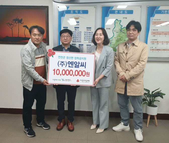 [HKSÇàÁ¤¹æ¼Û]¿¬Ãµ±º û»ê¸é ¼ÒÀç ESG³ª´®±â¾÷ÀÎ ¢ß¿£¾Ë¾¾´Â 9ÀÏ Ã»»ê¸éÇàÁ¤º¹Áö¼¾ÅÍ¿¡ ÀåÇÐ±Ý 1000¸¸¿øÀ» ±âŹÇß´Ù.
