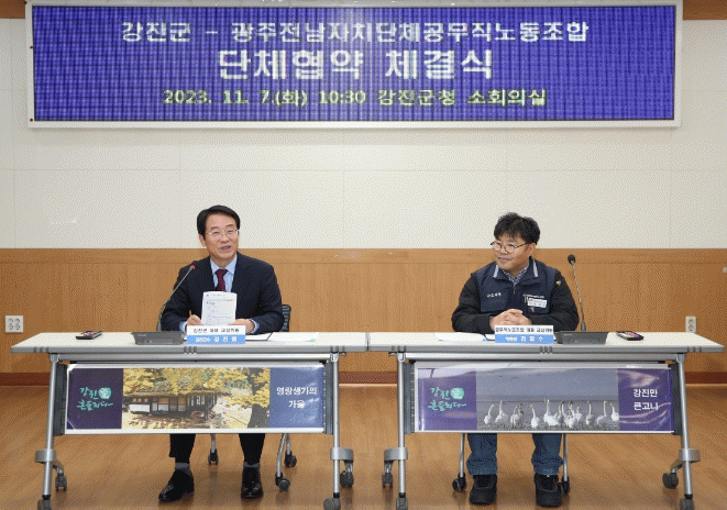 [HKSÇàÁ¤¹æ¼Û]°Áø±º°ú ±¤ÁÖÀü³²ÀÚÄ¡´Üü°ø¹«Á÷³ëµ¿Á¶ÇÕÀÌ Áö³ 7ÀÏ ±ºÃ» ¼ÒȸÀǽǿ¡¼ ´ÜüÇù¾à ü°á½ÄÀ» °¡Á³´Ù.