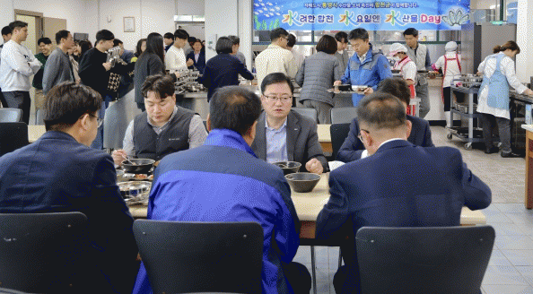 [HKSÇàÁ¤¹æ¼Û]ÇÕõ±ºÀº 8ÀÏ ±ºÃ» ±¸³»½Ä´ç¿¡¼ ¼ö»ê¹°·Î ½Ä»ç ¸Þ´º¸¦ ±¸¼ºÇØ ¡®¼ö¿äÀÏ ¼ö»ê¹°µ¥ÀÌ¡¯ ¸¦ ¿î¿µÇß´Ù. À̹ø Çà»ç´Â ÇÕõ±ºÀÇ ÀڸŰῬµµ½ÃÀÎ Å뿵½Ã¿ÍÀÇ Çù·ÂÀ» °ÈÇÏ°í ¼ö»ê¹° ¼Òºñ¸¦ ÃËÁøÇϱâ À§ÇØ ÁøÇàµÆ´Ù. ±ºÀº Å뿵¡¦