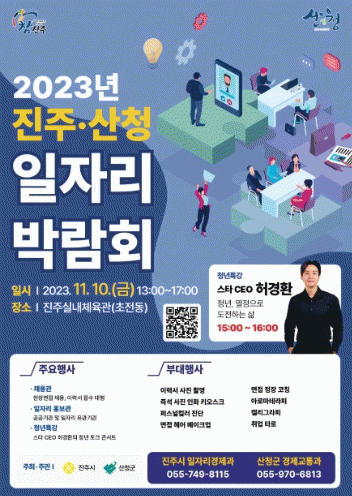 [HKSÇàÁ¤¹æ¼Û]ÁøÁÖ½Ã¿Í »êû±ºÀÌ Áö¿ª °í¿ë½ÃÀåÀÇ È°¼ºÈ¿Í ±¸ÀΡ¤±¸Á÷³ ÇØ¼Ò¸¦ À§ÇØ ¿À´Â 10ÀÏ ÃÊÀüµ¿ ÁøÁֽdz»Ã¼À°°ü¿¡¼ ¡®2023³â ÁøÁÖ-»êû ÀÏÀÚ¸®¹Ú¶÷ȸ¡¯¸¦ °³ÃÖÇÑ´Ù.