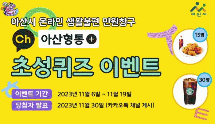 [ÃæÃ»±Ç] ¾Æ»ê½Ã, īī¿ÀÅå ¹Î¿øÃ¢±¸ '¾Æ»êÇüÅë' Ãʼº ÄûÁî À̺¥Æ® ÁøÇà |2023. 11.06