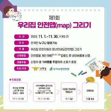 [HKSÇàÁ¤¹æ¼Û]õ¾È¼ºÏ¼Ò¹æ¼°¡ ¡®Á¦76ȸ ºÒÁ¶½É °Á¶ÀÇ ´Þ¡¯À» ¸Â¾Æ Áö³ 11¿ù 1ÀϺÎÅÍ ¿À´Â 11¿ù 30ÀϱîÁö 1°³¿ù°£ Àü ±¹¹ÎÀ» ´ë»óÀ¸·Î ¡®¿ì¸®Áý ¾ÈÀüÁöÅ´ÀÌ Çdz¾È³»µµ(¾ÈÀü¸Ê)±×¸®±â¡¯ Çà»ç¸¦ ½Ç½ÃÇÑ´Ù°í ÀüÇß´Ù.