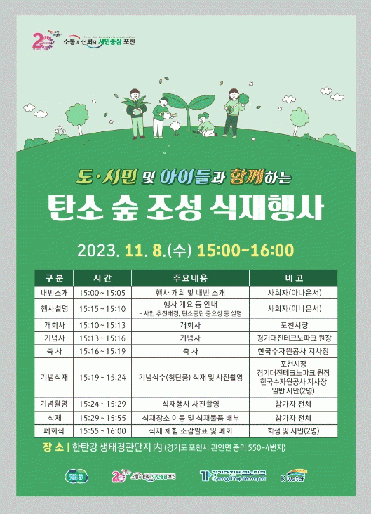 [¼öµµ±Ç] Æ÷õ½Ã, µµ¡¤½Ã¹Î ¹× ¾ÆÀ̵é°ú ÇÔ²²Çϴ ź¼Ò ½£ Á¶¼º ½ÄÀçÇà»ç °³ÃÖ |2023. 11.02
