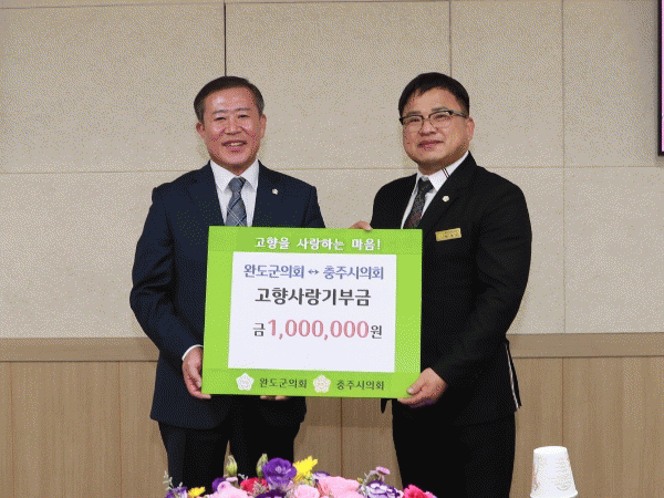 [HKSÇàÁ¤¹æ¼Û]¿Ïµµ±ºÀÇȸ°¡ ÃæºÏ ÃæÁÖ½ÃÀÇȸ°¡ µÎ Áö¿ª °øµ¿¹ßÀü°ú ¿ìÈ£Çù·ÂÀ» ´ÙÁ®°¡±â À§ÇØ °íÇâ»ç¶û±âºÎ±ÝÀ» °¢°¢ ±âŹÇϱâ·Î Çß´Ù.
