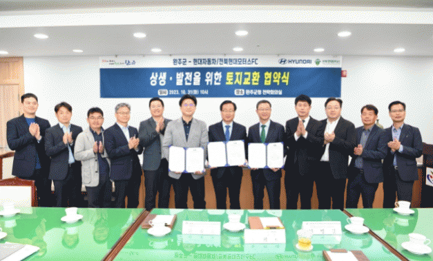 [HKSÇàÁ¤¹æ¼Û]¿ÏÁÖ±ºÀÌ 31ÀÏ ¿ÏÁÖ±ºÃ» Àü·«È¸Àǽǿ¡¼ Çö´ëÀÚµ¿Â÷¢ß, ÀüºÏÇö´ë¸ðÅͽºFC¿Í ÇÔ²² »ó»ý¡¤¹ßÀüÀ» À§ÇÑ ÅäÁö ±³È¯ Çù¾àÀ» ü°áÇß´Ù.
