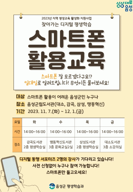 [HKSÇàÁ¤¹æ¼Û]À½¼º±ºÀº 7ÀϺÎÅÍ 12¿ù 1ÀϱîÁö À½¼º±º¸³µµ¼°ü 4°³¼Ò(´ë¼Ò, °¨°î, »ï¼º, ¸Íµ¿Çõ½Å)¿¡¼ ã¾Æ°¡´Â µðÁöÅÐ Æò»ýÇнÀ ¡®½º¸¶Æ®Æù Ȱ¿ë ±³À°¡¯À» ¿î¿µÇÑ´Ù°í ¹àÇû´Ù.