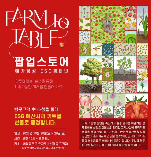 [HKSÇàÁ¤¹æ¼Û]¿¹»ê±ºÀº ³óƯ»ê¹° ÅëÇպ귣µå ¡®¿¹°¡Á¤¼º¡¯ È«º¸¸¦ À§ÇÑ ESGÄ·ÆäÀÎ ÆË¾÷½ºÅä¾î¸¦ 10¿ù 27ÀϺÎÅÍ 28ÀÏ ÀÌÆ²°£ ¼¿ï °æº¹±Ã ¿· ¼ÃÌ¿¡¼ ¿î¿µÇÑ´Ù°í ¹àÇû´Ù.