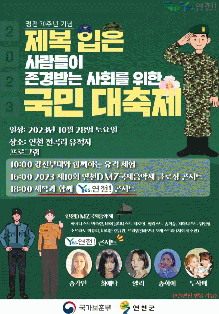 [HKSÇàÁ¤¹æ¼Û]¿¬Ãµ±º°ú ±¹°¡º¸Èƺδ ¿À´Â 28ÀÏ ¿¬Ãµ Àü°î¸®À¯Àû¿¡¼ ¡®Á¦º¹ ÀÔÀº »ç¶÷µéÀÌ Á¸°æ¹Þ´Â »çȸ¸¦ À§ÇÑ ±¹¹Î´ëÃàÁ¦(2023 °Ã¶Ä·ÇÁüÇè)¡¯¸¦ °³ÃÖÇÑ´Ù.