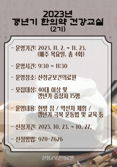 [¿µ³²±Ç] »êû±º, °»³â±â ÇÑÀÇ¾à °Ç°±³½Ç ¿î¿µ |2023. 10.24