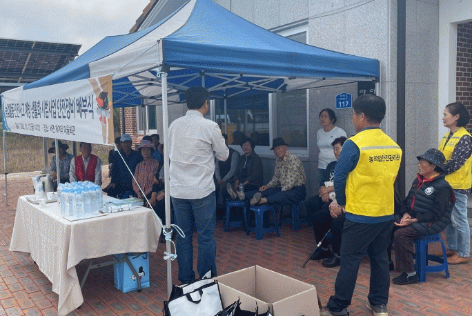 [HKSÇàÁ¤¹æ¼Û]¼Ãµ±º³ó¾÷±â¼ú¼¾ÅͰ¡ 13ÀÏ ¼¸é °³¾ß¸® ¸¶À»ÁÖ¹ÎÀ» ´ë»óÀ¸·Î ³ó¾÷Ȱµ¿ ¾ÈÀüÀåºñ ¹èºÎ½ÄÀ» °¡Á³´Ù.