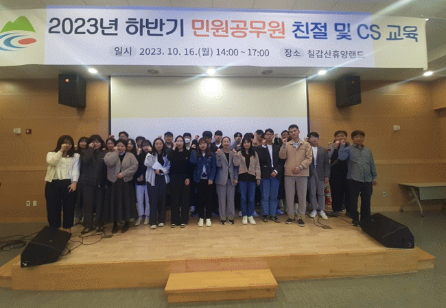 [HKSÇàÁ¤¹æ¼Û]û¾ç±ºÀÌ Áö³ 16ÀÏ ¹Î¿ø °ø¹«¿ø 36¸íÀ» ´ë»óÀ¸·Î ´ëÄ¡¸é ¼ÒÀç Ä¥°©»ê È޾緣µå¿¡¼ °¨µ¿ ÇàÁ¤À» À§ÇÑ Ä£Àý.°í°´ ¼ºñ½º(CS) ±³À°¡¯À» ½Ç½ÃÇß´Ù.