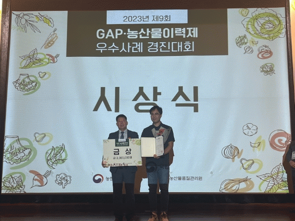 [HKSÇàÁ¤¹æ¼Û]õ¾È½Ã õ¾ÈÆ÷µµ¿µ³óÁ¶ÇÕ¹ýÀÎÀÌ ±¹¸³³ó»ê¹°Ç°Áú°ü¸®¿ø(³ó°ü¿ø)ÀÌ ÁÖÃÖÇÑ Á¦9ȸ ³ó»ê¹°¿ì¼ö°ü¸®(GAP)¡¤³ó»ê¹°ÀÌ·ÂÁ¦ ¿ì¼ö»ç·Ê °æÁø´ëȸ¿¡¼ ±Ý»ó(³ó½Äǰ Àå°ü»ó)À» ¼ö»óÇß´Ù. ³ó»ê¹°¿ì¼ö°ü¸®(GAP)Á¦µµ´Â ³ó»ê¹° »ý»ê¡¤¼öÈ®¡¤¡¦