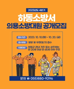 [¿µ³²±Ç] Çϵ¿¼Ò¹æ¼, 4ºÐ±â ½Å±Ô ÀÇ¿ë¼Ò¹æ´ë¿ø °ø°³ ¸ðÁý |2023. 10.13