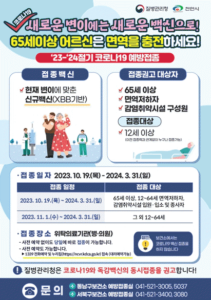 [ÃæÃ»±Ç] õ¾È½Ã, 19ÀϺÎÅÍ °íÀ§Ç豺 Äڷγª19 ¹«·á ¿¹¹æÁ¢Á¾ ½Ç½Ã |2023. 10.12
