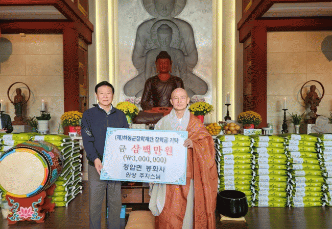 [HKSÇàÁ¤¹æ¼Û](Àç)Çϵ¿±ºÀåÇÐÀç´ÜÀº û¾Ï¸é¿¡ ¼ÒÀçÇÑ ºÀÈ»ç ¿ø»ó ÁÖÁö½º´ÔÀÌ Áö³ 9ÀÏ ÈÄÇÐ ¾ç¼º¿¡ ½á´Þ¶ó¸ç ÀåÇбâ±Ý 300¸¸¿øÀ» ±âŹÇß´Ù°í 12ÀÏ ¹àÇû´Ù.