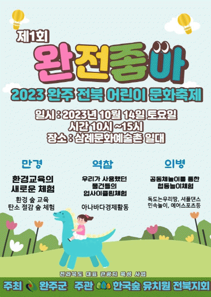 [HKSÇàÁ¤¹æ¼Û]¿ÏÁÖ±ºÀÌ ¡®Á¦1ȸ ¿ÏÁÖ¡¤ÀüºÏ »ó»ýÇù·Â ¾î¸°ÀÌ ¹®ÈÃàÁ¦ ¿ÏÀüÁÁ¾Æ¡¯¸¦ ¿À´Â 14ÀÏ ¿ÀÀü 10½ÃºÎÅÍ ¿ÀÈÄ 3½Ã±îÁö Àü¶óºÏµµ ´ëÇ¥°ü±¤Áö »ï·Ê¹®È¿¹¼úÃÌ¿¡¼ °³ÃÖÇÑ´Ù.