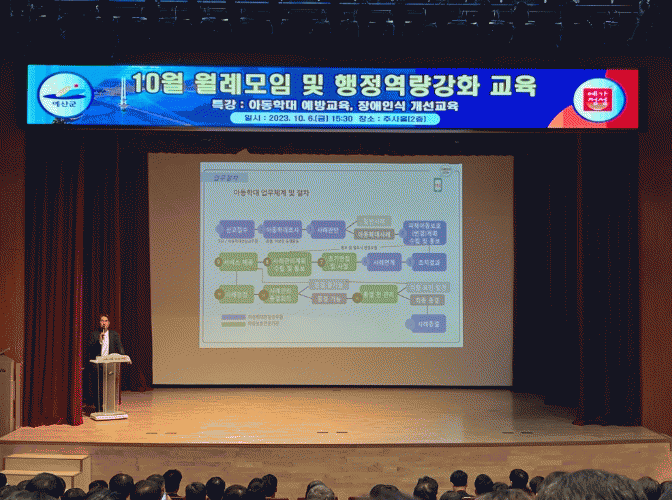[HKSÇàÁ¤¹æ¼Û]¿¹»ê±ºÀº 10¿ù Á÷¿ø ¿ù·Ê¸ðÀÓ¿¡¼ ¾Æµ¿Çд뿡 ´ëÇÑ ¿Ã¹Ù¸¥ ÀÌÇØ ¹× ¿¹¹æÀ» À§ÇØ °ø¹«¿ø 300¿©¸íÀ» ´ë»óÀ¸·Î 2023³â ¾Æµ¿ÇÐ´ë ¿¹¹æ±³À°À» ½Ç½ÃÇß´Ù°í ¹àÇû´Ù. ±³À°¿¡ ÃʺùµÈ Ãæ³²¼ºÎ¾Æµ¿º¸È£Àü¹®±â°ü ÁÖÁø°ü °üÀåÀº ¡®ÇÑ ¾Æ¡¦