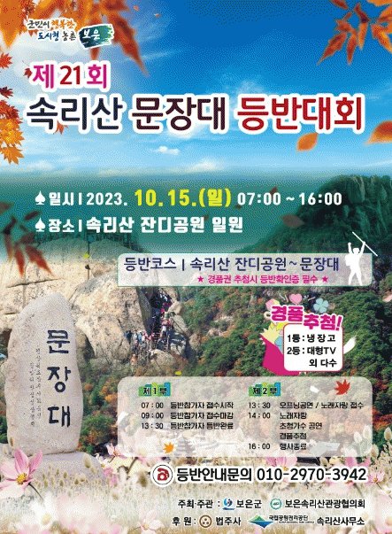 [ÃæÃ»±Ç] º¸Àº±º, Á¦21ȸ ¼Ó¸®»ê ¹®Àå´ë µî¹Ý´ëȸ °³ÃÖ |2023. 10.10