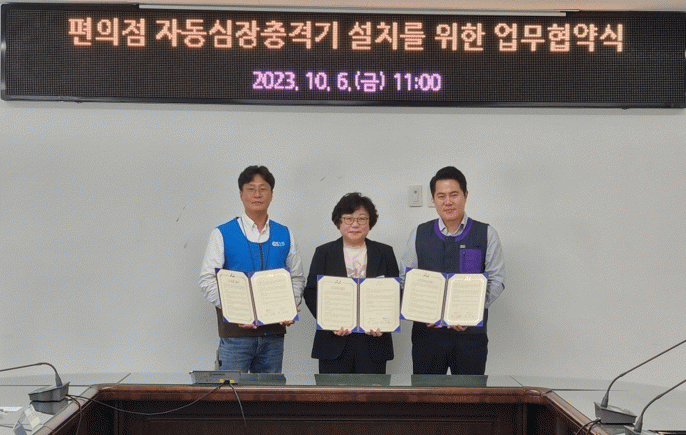 [HKSÇàÁ¤¹æ¼Û]¾Æ»ê½Ã º¸°Ç¼Ò´Â Áö³ 6ÀÏ Ãæ³² ÃÖÃÊ·Î °ü³» ÆíÀÇÁ¡ 10°³¼Ò¿¡ ÀÚµ¿½ÉÀåÃæ°Ý±â ¼³Ä¡¸¦ À§ÇÑ ¾÷¹«Çù¾àÀ» ü°áÇß´Ù. À̹ø Çù¾àÀº °ü³» ÆíÀÇÁ¡ ºê·£µå Áß 100°³¼Ò ÀÌ»óÀ¸·Î °¡Àå ¸¹ÀÌ ÀÔÁ¡ÇØ ÀÖ´Â CU(¢ßBGF¸®Å×ÀÏ) ¹× GS25(GS¸®¡¦