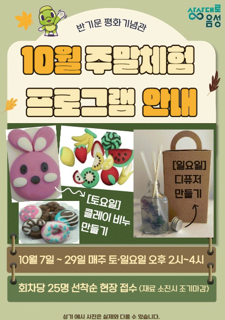 [ÃæÃ»±Ç] À½¼º±º ¹Ý±â¹® Æòȱâ³ä°ü, ¿Â °¡Á·ÀÌ ÇÔ²² Áñ±â´Â ÁÖ¸» üÇè ¿î¿µ |2023. 10.05