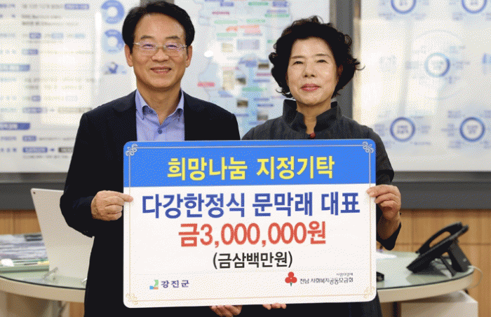 [HKSÇàÁ¤¹æ¼Û]°Áø ´Ù°ÇÑÁ¤½Ä ¹®¸··¡ ´ëÇ¥°¡ Áö³´Þ 27ÀÏ °ü³» ¾î·Á¿î ÀÌ¿ôÀ» À§ÇØ ½á´Þ¶ó¸ç 300¸¸¿øÀ» °Áø±º¿¡ ±âŹÇß´Ù.