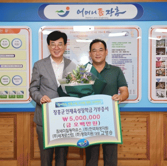[HKSÇàÁ¤¹æ¼Û]°í¿µ½Â ÆòÈÀÚ¿ø ´ëÇ¥°¡ Áö³ 27ÀÏ ÀåÈﱺÀÎÀçÀ°¼ºÀåÇÐȸ¿¡ 500¸¸¿øÀÇ ÀåÇбÝÀ» Àü´ÞÇß´Ù.
