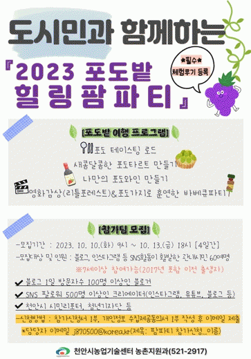 [ÃæÃ»±Ç] õ¾È½Ã, ¡®Æ÷µµ¹ç Èú¸µ ÆÊÆÄƼ¡¯ Âü°¡ÀÚ ¸ðÁý |2023. 10.04