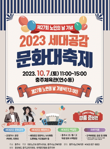 [ÃæÃ»±Ç] ÃæÁÖ½Ã, Á¦27ȸ ³ëÀÎÀÇ ³¯ ±â³ä '2023 ¼¼´ë°ø°¨ ¹®È´ëÃàÁ¦' °³ÃÖ |2023. 10.04
