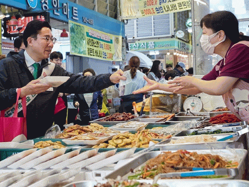 [HKSÇàÁ¤¹æ¼Û]¹Ú°æ±Í ¾Æ»ê½ÃÀåÀÌ Ãß¼® ¿¬ÈÞ¸¦ ¾ÕµÐ 9¿ù 27ÀÏ ¿Â¾ç¿Âõ½ÃÀåÀ» ¹æ¹®ÇØ ¸Ô°Å¸®¸¦ ±¸¸ÅÇϰí Ãß¼® Àå¹Ù±¸´Ï ¹°°¡¸¦ »ìÆñ´Ù.